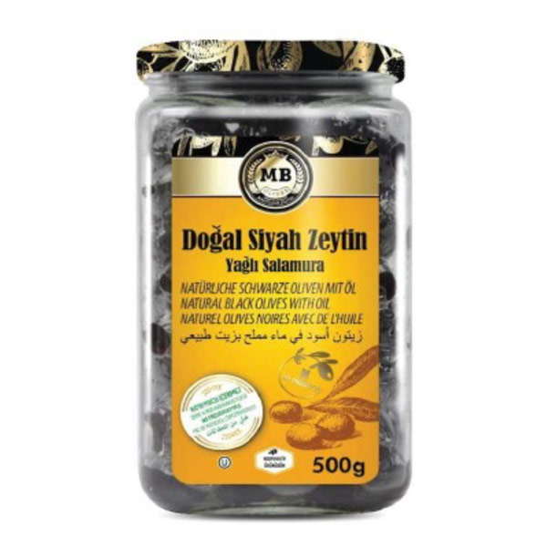 MB Super Large Black Olives Pet 6 x 500g Glass Jar